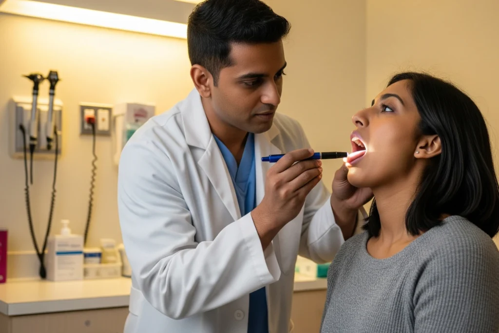 The examination begins with a simple, painless physical check. The doctor will ask you about your child's symptoms, how long they have been sick, and their general medical history. Next, they will look inside your child's mouth, ears, and nose. The doctor will use a small light and a wooden tongue depressor to get a clear view of the back of the throat.