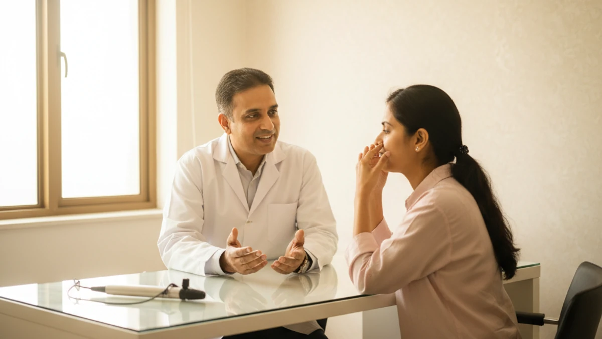 ENT surgeon explaining endoscopic sinus surgery to a patient at THANC Hospital, Chennai